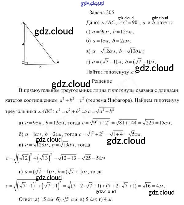 Ответ на задание 205 Учебник Геометрия за 8 (восьмой) класс Казаков 2018 онлайн и без номера телефона.