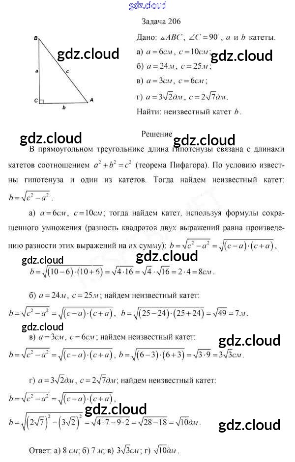 Ответ на задание 206 Учебник Геометрия за 8 (восьмой) класс Казаков 2018 онлайн и без номера телефона.