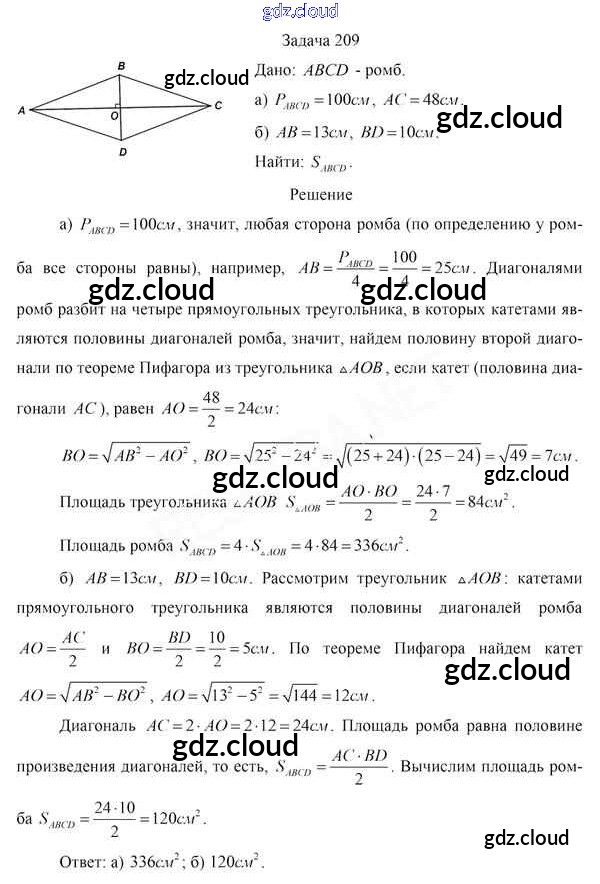 Ответ на задание 209 Учебник Геометрия за 8 (восьмой) класс Казаков 2018 онлайн и без номера телефона.