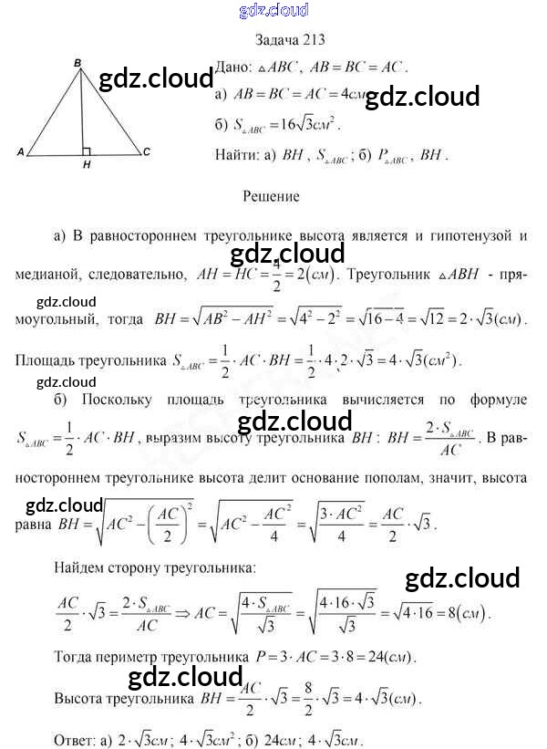 Ответ на задание 213 Учебник Геометрия за 8 (восьмой) класс Казаков 2018 онлайн и без номера телефона.