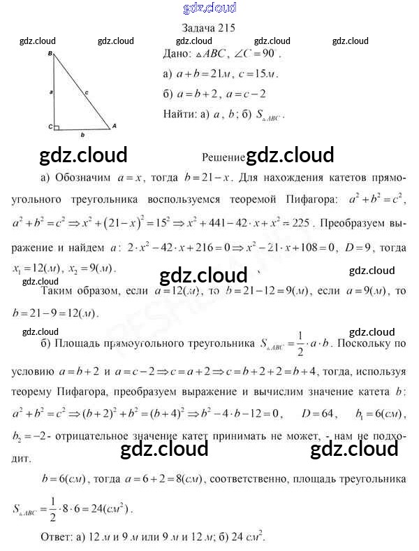Ответ на задание 215 Учебник Геометрия за 8 (восьмой) класс Казаков 2018 онлайн и без номера телефона.