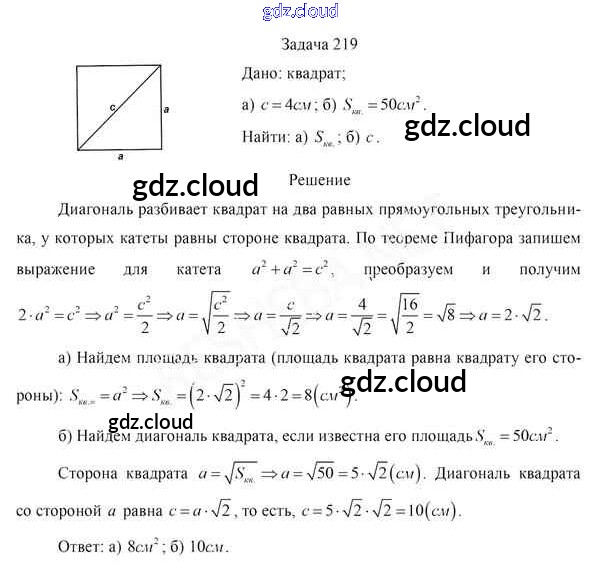 Ответ на задание 219 Учебник Геометрия за 8 (восьмой) класс Казаков 2018 онлайн и без номера телефона.