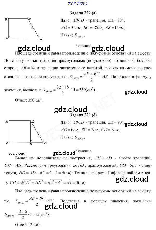 Ответ на задание 229 Учебник Геометрия за 8 (восьмой) класс Казаков 2018 онлайн и без номера телефона.