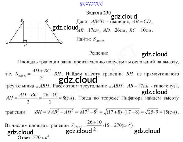 Ответ на задание 230 Учебник Геометрия за 8 (восьмой) класс Казаков 2018 онлайн и без номера телефона.