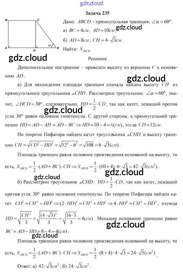Ответ на задание 235 Учебник Геометрия за 8 (восьмой) класс Казаков 2018 онлайн и без номера телефона.