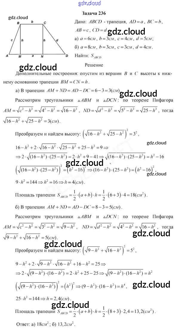 Ответ на задание 236 Учебник Геометрия за 8 (восьмой) класс Казаков 2018 онлайн и без номера телефона.