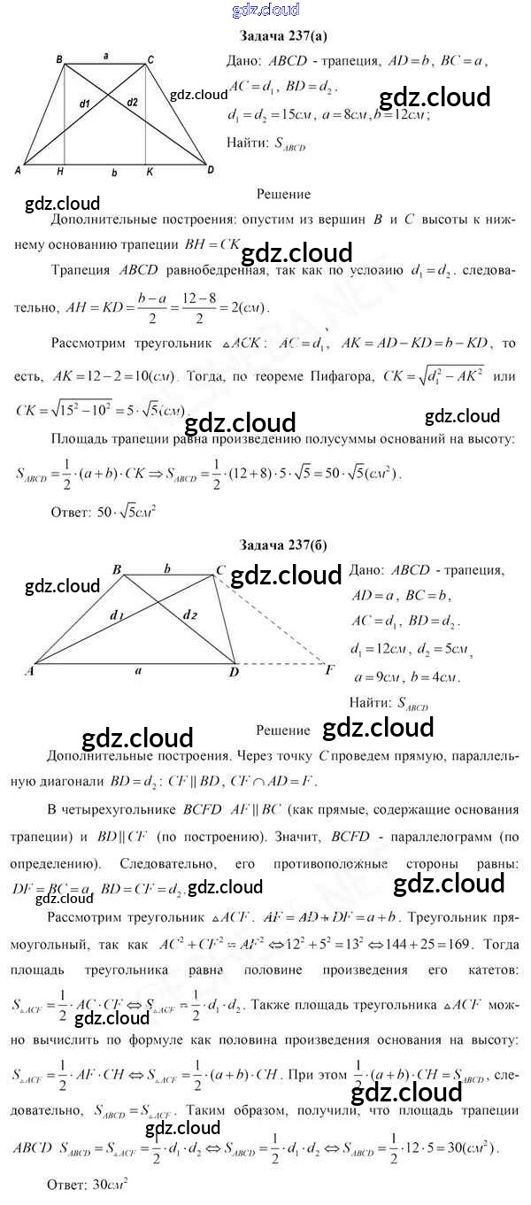 Ответ на задание 237 Учебник Геометрия за 8 (восьмой) класс Казаков 2018 онлайн и без номера телефона.