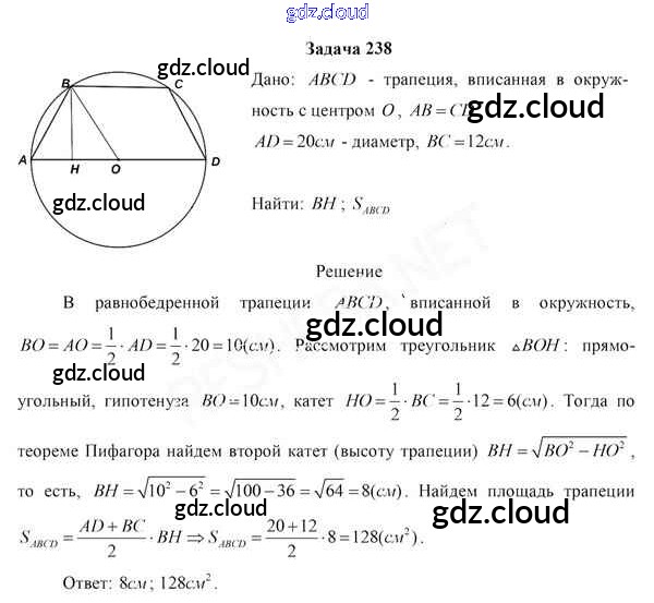 Ответ на задание 238 Учебник Геометрия за 8 (восьмой) класс Казаков 2018 онлайн и без номера телефона.