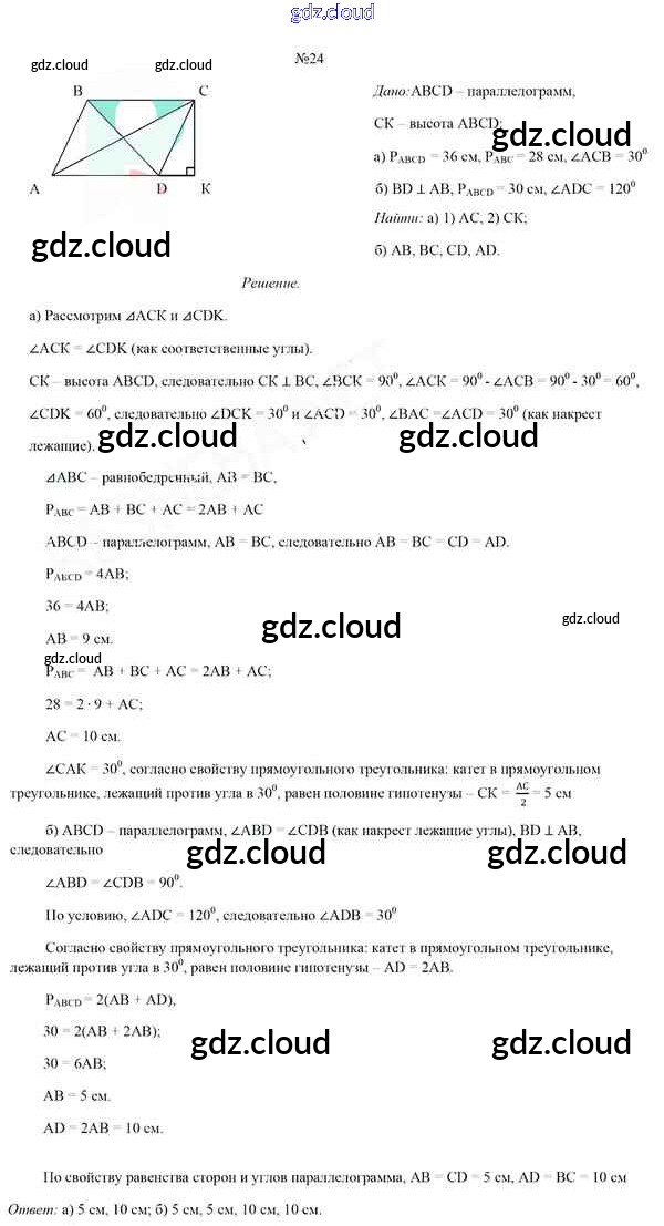 Ответ на задание 24 Учебник Геометрия за 8 (восьмой) класс Казаков 2018 онлайн и без номера телефона.