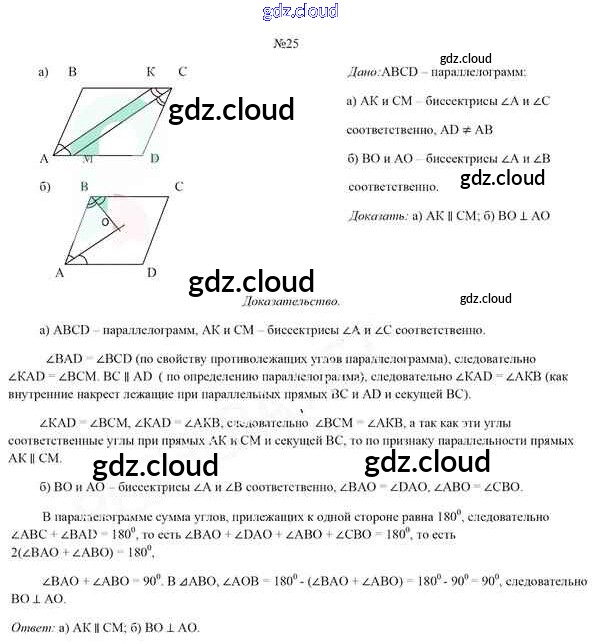 Ответ на задание 25 Учебник Геометрия за 8 (восьмой) класс Казаков 2018 онлайн и без номера телефона.