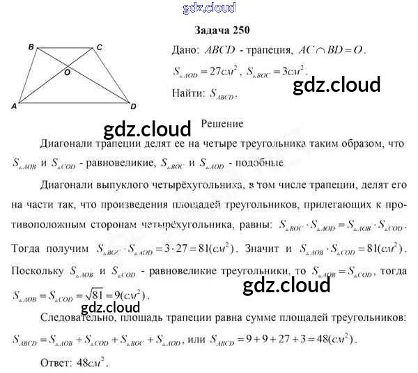 Ответ на задание 250 Учебник Геометрия за 8 (восьмой) класс Казаков 2018 онлайн и без номера телефона.