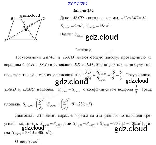 Ответ на задание 252 Учебник Геометрия за 8 (восьмой) класс Казаков 2018 онлайн и без номера телефона.
