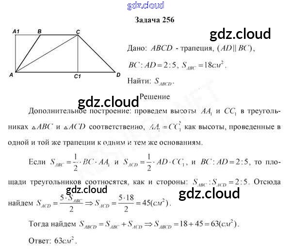 Ответ на задание 256 Учебник Геометрия за 8 (восьмой) класс Казаков 2018 онлайн и без номера телефона.