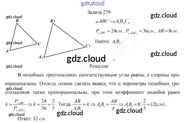 Ответ на задание 279 Учебник Геометрия за 8 (восьмой) класс Казаков 2018 онлайн и без номера телефона.