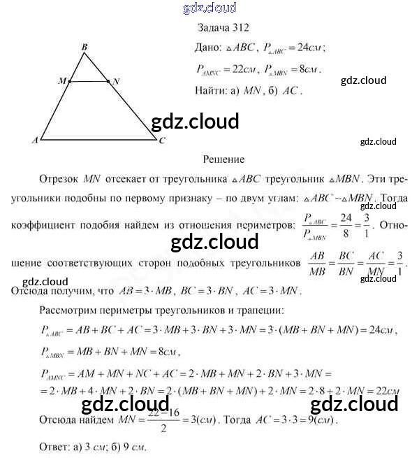 Ответ на задание 312 Учебник Геометрия за 8 (восьмой) класс Казаков 2018 онлайн и без номера телефона.