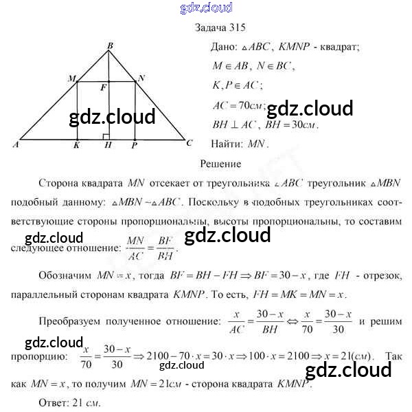 Ответ на задание 315 Учебник Геометрия за 8 (восьмой) класс Казаков 2018 онлайн и без номера телефона.