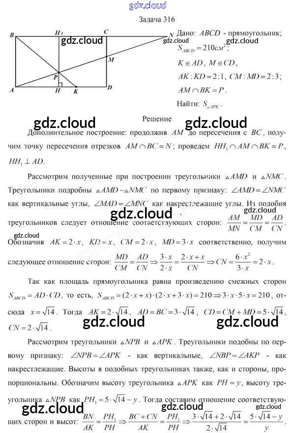 Ответ на задание 316 Учебник Геометрия за 8 (восьмой) класс Казаков 2018 онлайн и без номера телефона.