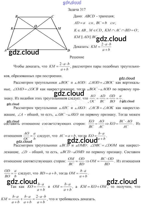 Ответ на задание 317 Учебник Геометрия за 8 (восьмой) класс Казаков 2018 онлайн и без номера телефона.