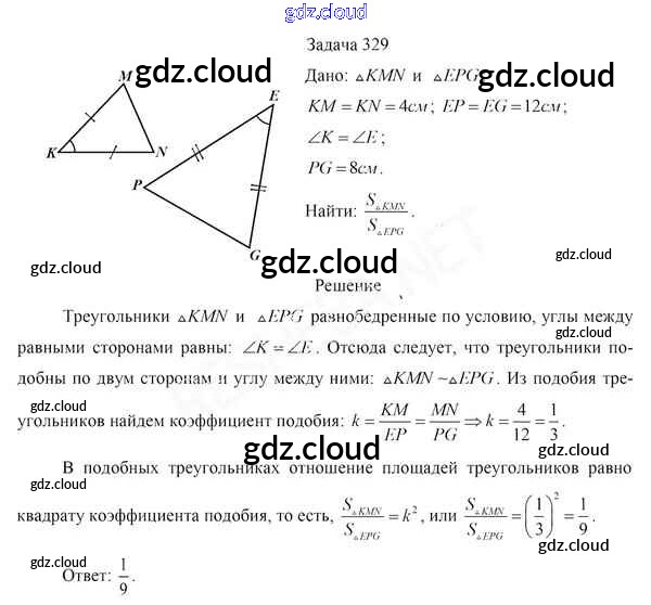 Ответ на задание 329 Учебник Геометрия за 8 (восьмой) класс Казаков 2018 онлайн и без номера телефона.