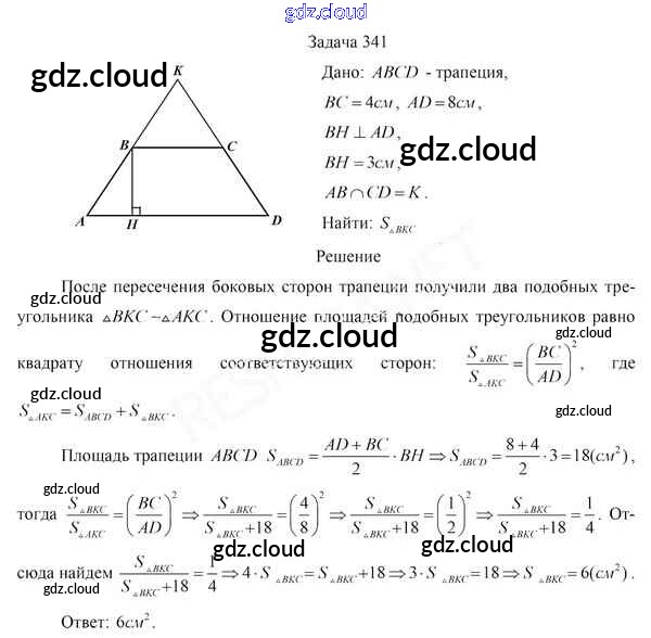 Ответ на задание 341 Учебник Геометрия за 8 (восьмой) класс Казаков 2018 онлайн и без номера телефона.