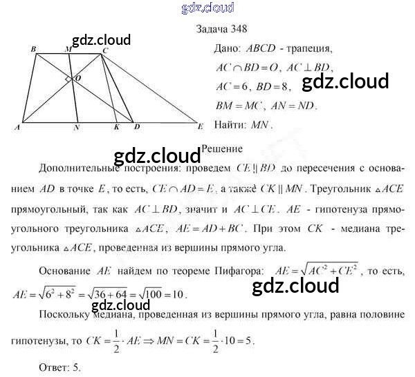 Ответ на задание 348 Учебник Геометрия за 8 (восьмой) класс Казаков 2018 онлайн и без номера телефона.