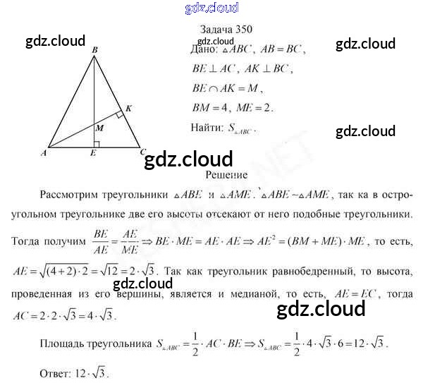 Ответ на задание 350 Учебник Геометрия за 8 (восьмой) класс Казаков 2018 онлайн и без номера телефона.