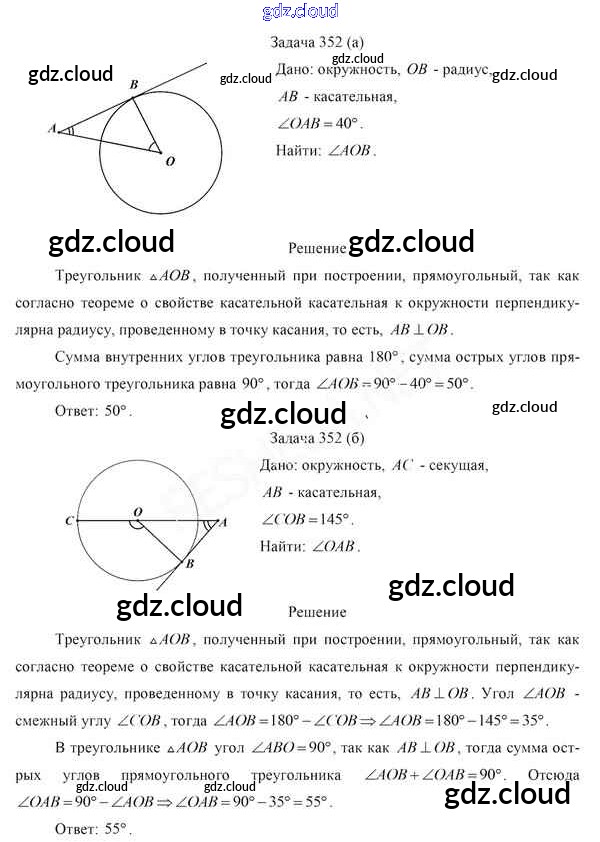 Ответ на задание 352 Учебник Геометрия за 8 (восьмой) класс Казаков 2018 онлайн и без номера телефона.