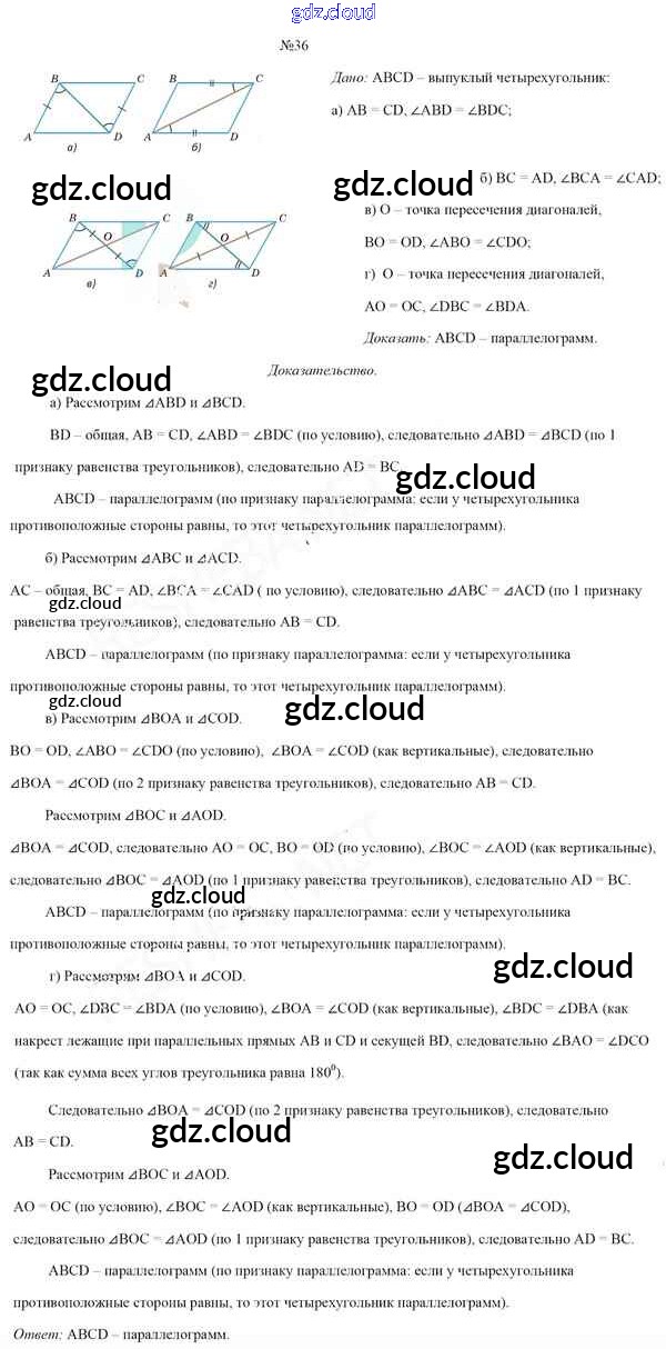 Ответ на задание 36 Учебник Геометрия за 8 (восьмой) класс Казаков 2018 онлайн и без номера телефона.