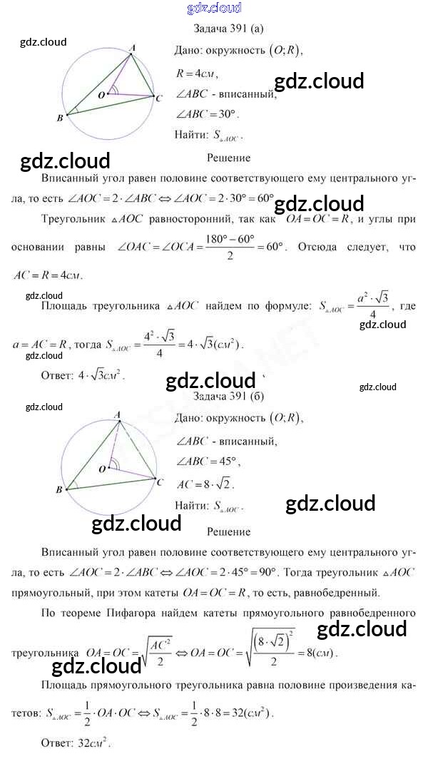 Ответ на задание 391 Учебник Геометрия за 8 (восьмой) класс Казаков 2018 онлайн и без номера телефона.