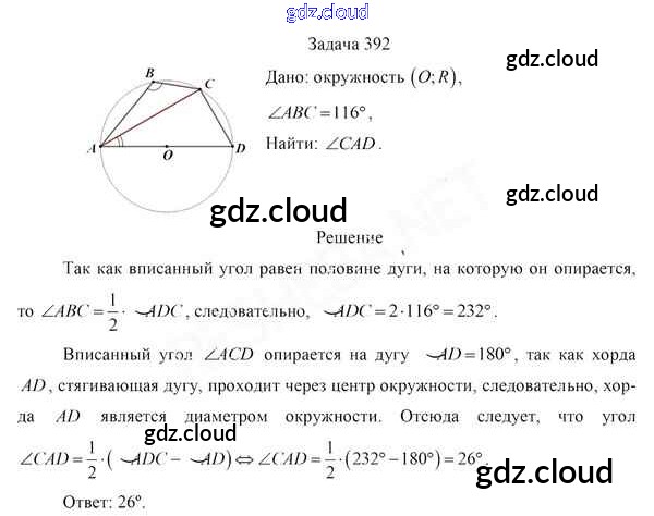 Ответ на задание 392 Учебник Геометрия за 8 (восьмой) класс Казаков 2018 онлайн и без номера телефона.