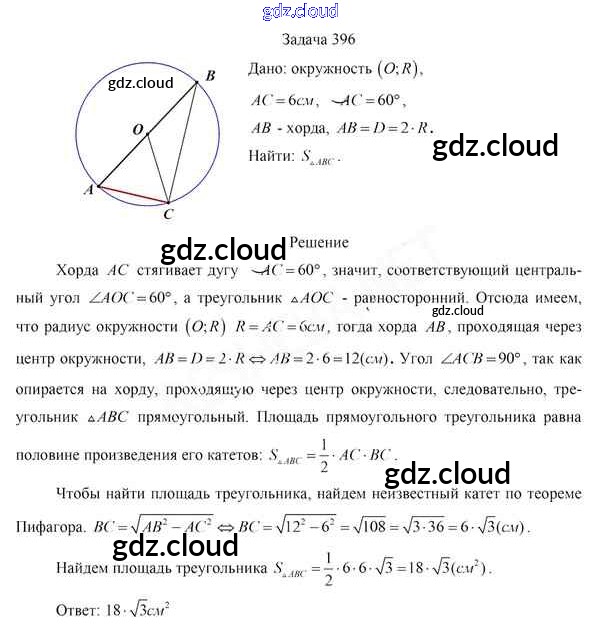 Ответ на задание 396 Учебник Геометрия за 8 (восьмой) класс Казаков 2018 онлайн и без номера телефона.