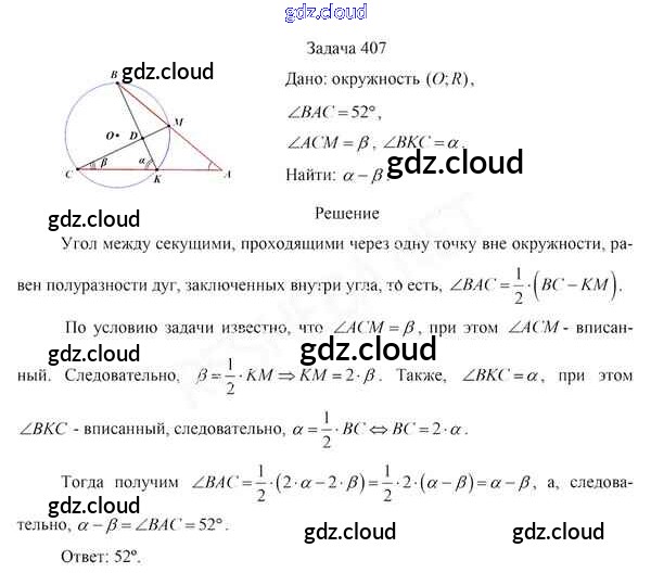 Ответ на задание 407 Учебник Геометрия за 8 (восьмой) класс Казаков 2018 онлайн и без номера телефона.