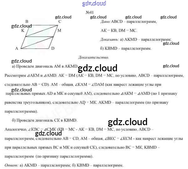 Ответ на задание 41 Учебник Геометрия за 8 (восьмой) класс Казаков 2018 онлайн и без номера телефона.