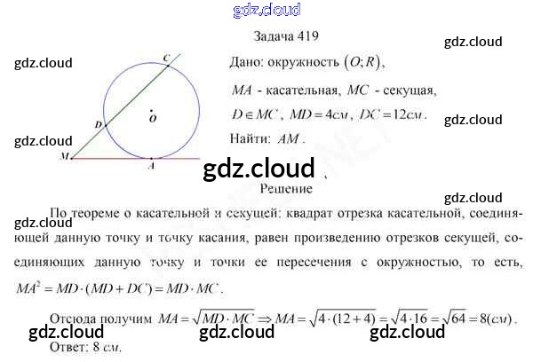 Ответ на задание 419 Учебник Геометрия за 8 (восьмой) класс Казаков 2018 онлайн и без номера телефона.