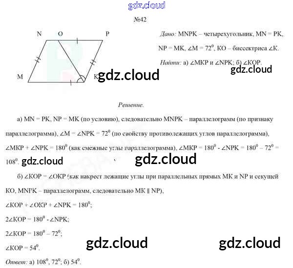 Ответ на задание 42 Учебник Геометрия за 8 (восьмой) класс Казаков 2018 онлайн и без номера телефона.