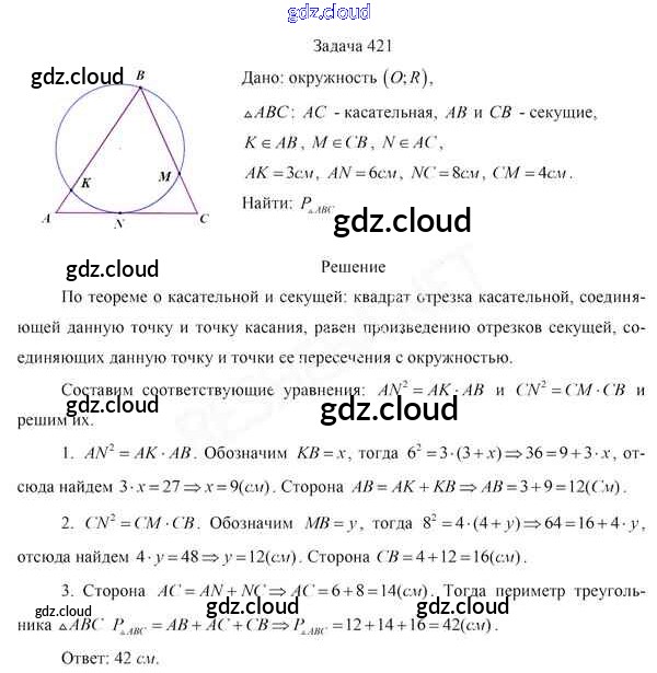 Ответ на задание 421 Учебник Геометрия за 8 (восьмой) класс Казаков 2018 онлайн и без номера телефона.
