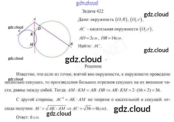 Ответ на задание 422 Учебник Геометрия за 8 (восьмой) класс Казаков 2018 онлайн и без номера телефона.