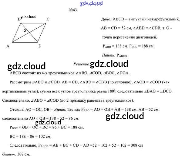 Ответ на задание 43 Учебник Геометрия за 8 (восьмой) класс Казаков 2018 онлайн и без номера телефона.
