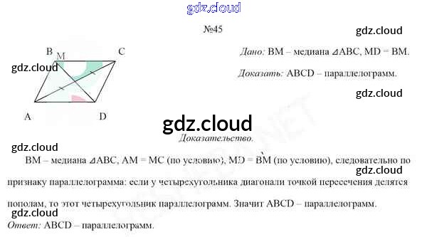 Ответ на задание 45 Учебник Геометрия за 8 (восьмой) класс Казаков 2018 онлайн и без номера телефона.