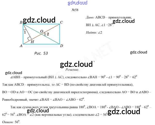 Ответ на задание 58 Учебник Геометрия за 8 (восьмой) класс Казаков 2018 онлайн и без номера телефона.