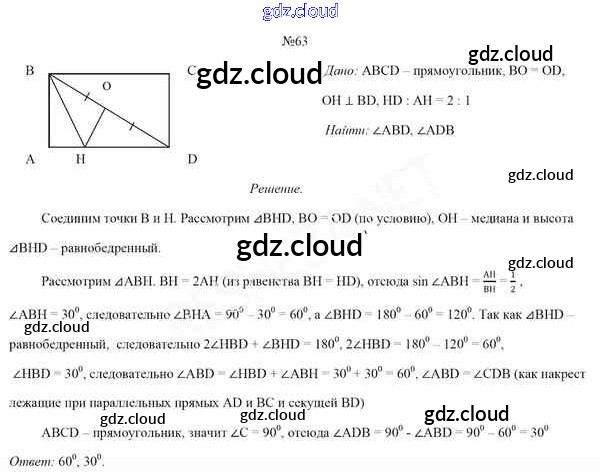 Ответ на задание 63 Учебник Геометрия за 8 (восьмой) класс Казаков 2018 онлайн и без номера телефона.