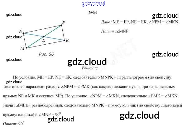 Ответ на задание 64 Учебник Геометрия за 8 (восьмой) класс Казаков 2018 онлайн и без номера телефона.