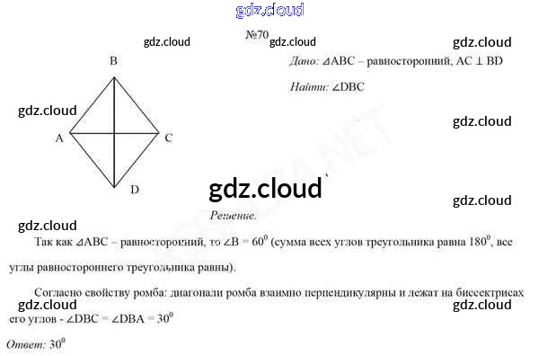 Ответ на задание 70 Учебник Геометрия за 8 (восьмой) класс Казаков 2018 онлайн и без номера телефона.