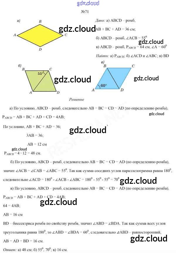 Ответ на задание 71 Учебник Геометрия за 8 (восьмой) класс Казаков 2018 онлайн и без номера телефона.