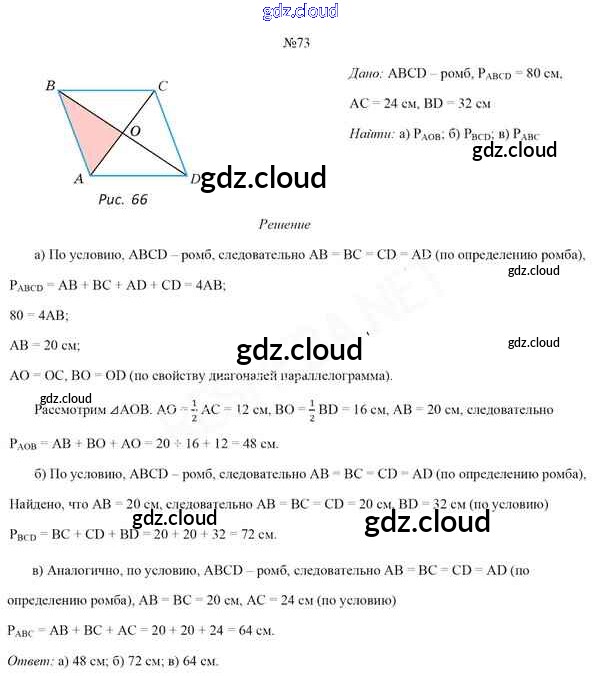 Ответ на задание 73 Учебник Геометрия за 8 (восьмой) класс Казаков 2018 онлайн и без номера телефона.