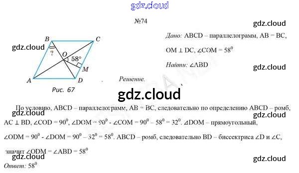 Ответ на задание 74 Учебник Геометрия за 8 (восьмой) класс Казаков 2018 онлайн и без номера телефона.