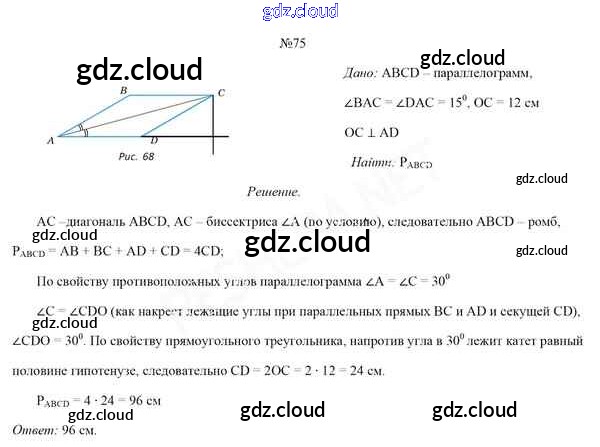 Ответ на задание 75 Учебник Геометрия за 8 (восьмой) класс Казаков 2018 онлайн и без номера телефона.