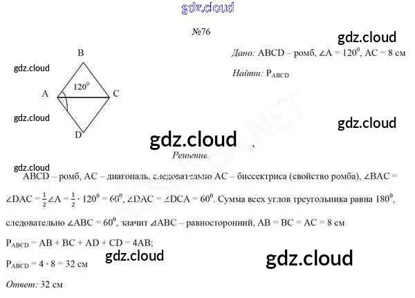 Ответ на задание 76 Учебник Геометрия за 8 (восьмой) класс Казаков 2018 онлайн и без номера телефона.