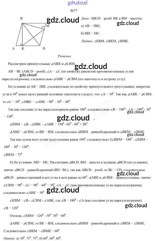 Ответ на задание 77 Учебник Геометрия за 8 (восьмой) класс Казаков 2018 онлайн и без номера телефона.
