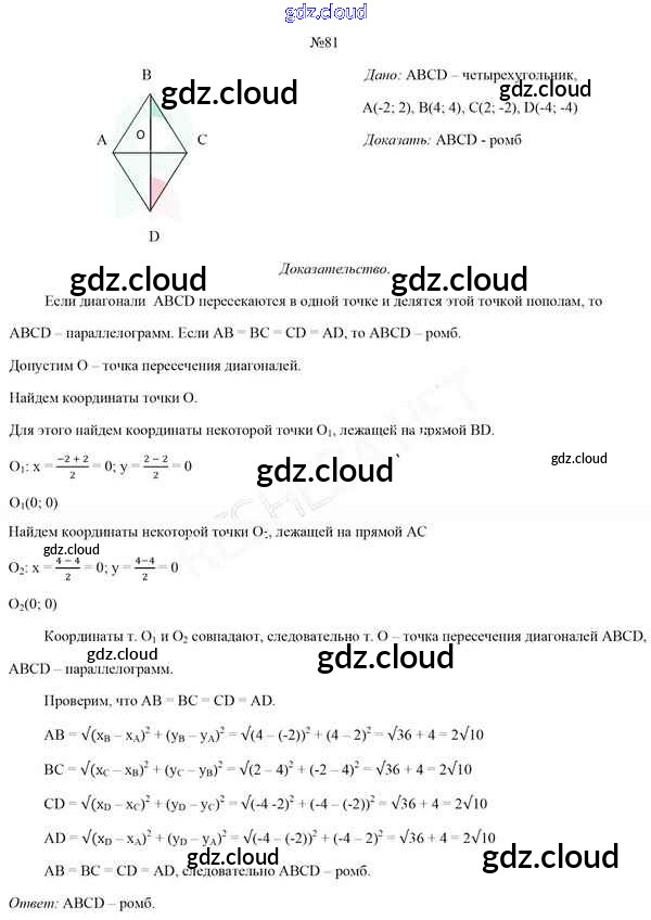 Ответ на задание 81 Учебник Геометрия за 8 (восьмой) класс Казаков 2018 онлайн и без номера телефона.